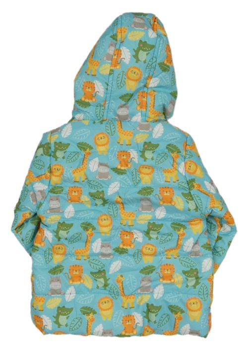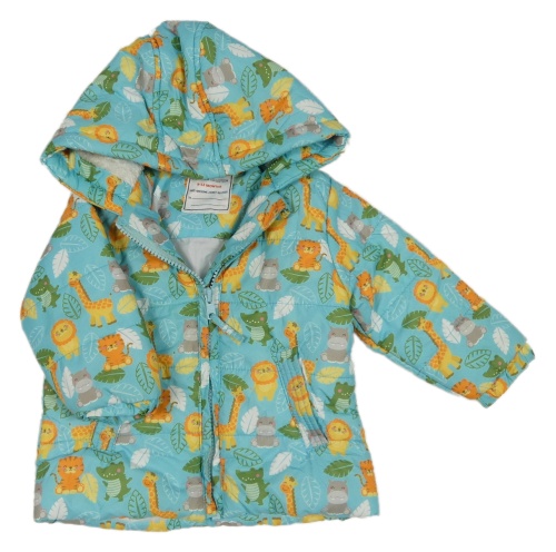 Tyrkysová šušťáková zimná bunda so zvieratkami a kapucňou Babyhug