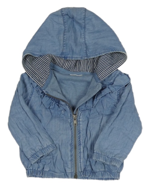 Modrá rifľová jesenná bunda s volánikmi a kapucňou Next