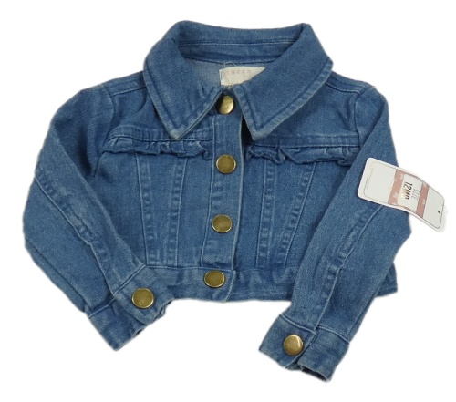 Nové - Modrá rifľová crop bunda s volánikmi