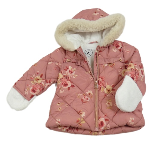 Staroružová prešívaná kvetovaná šušťáková zimná bunda s kapucňou George