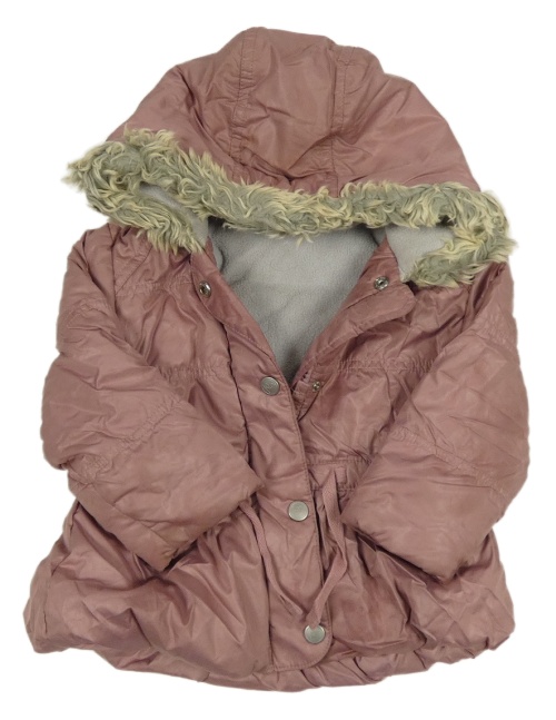 Staroružová prešívaná šušťáková zimná parka s kapucňou s kožešinou Next