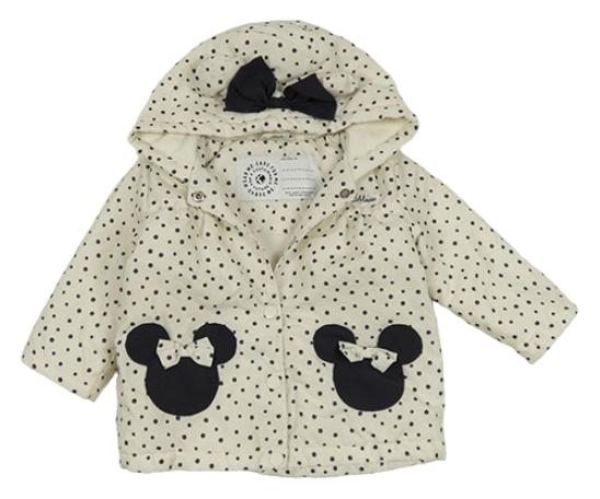Smotanová bodkovaná á šušťáková zateplená bunda s Minnie a kapucňou George