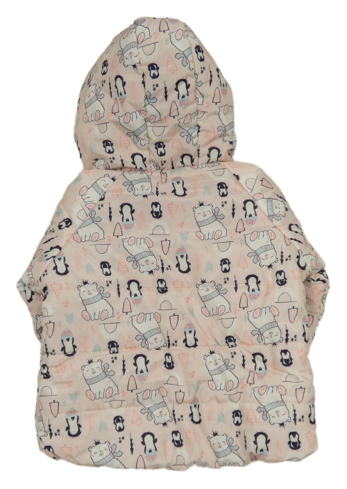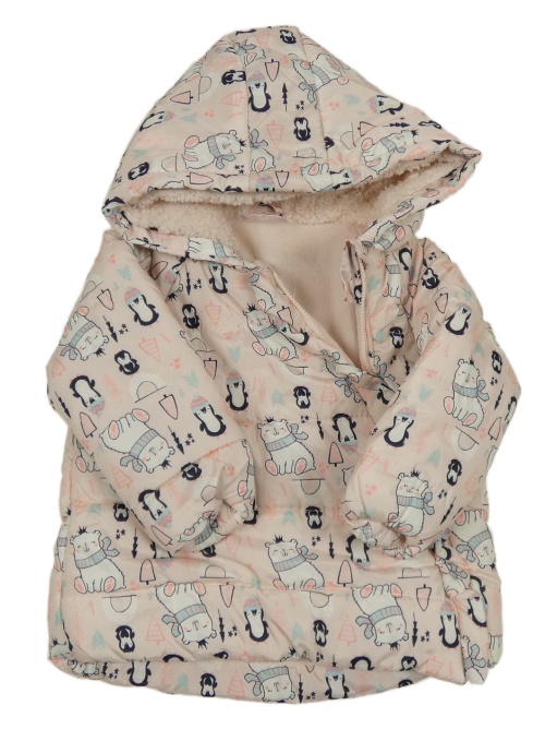 Svetloružová šušťáková zimná bunda so zvířaty a kapucňou