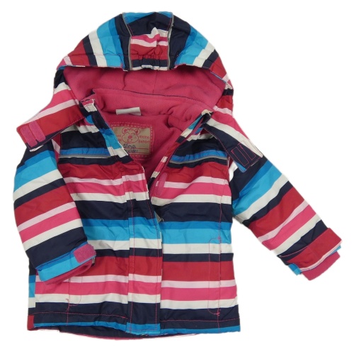 Ružovo-modro-biela pruhovaná šušťáková zimná bunda s kapucňou Topomini
