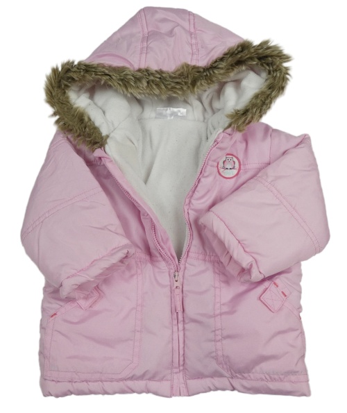 • Svetloružová prešívaná šušťáková zimná bunda so sovičkou a kapucňou s kožešinou Ergee