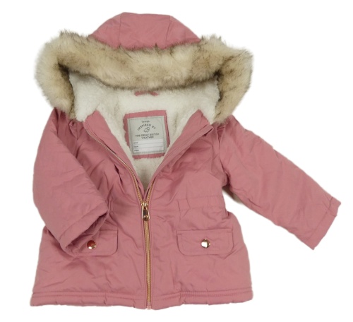 Ružová šušťáková zimná bunda s kapucňou s kožešinou George