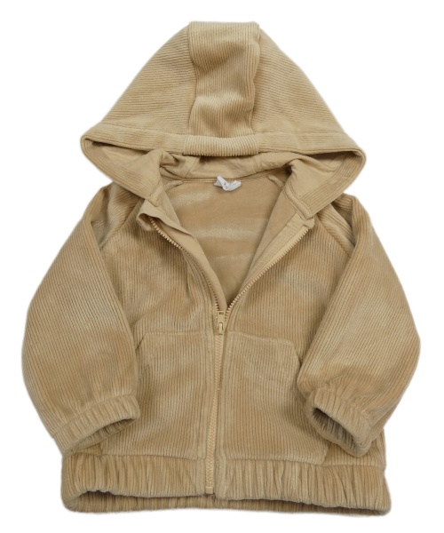 Béžová rebrovaná plyšová bunda s kapucňou F&F