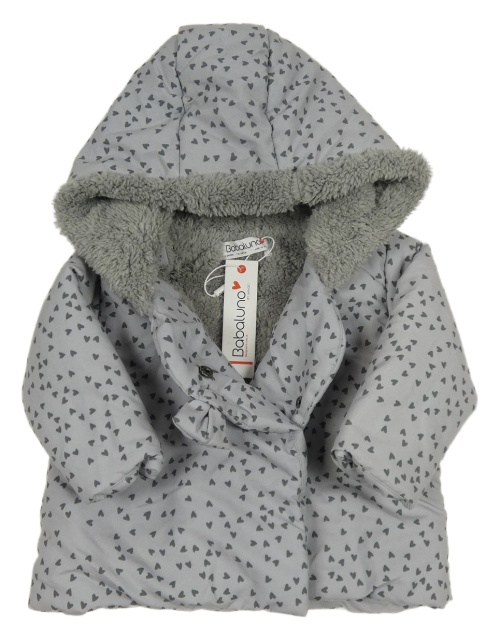Nové - Sivá šušťáková zimná bunda so srdiečkami a kapucňou s kožešinou