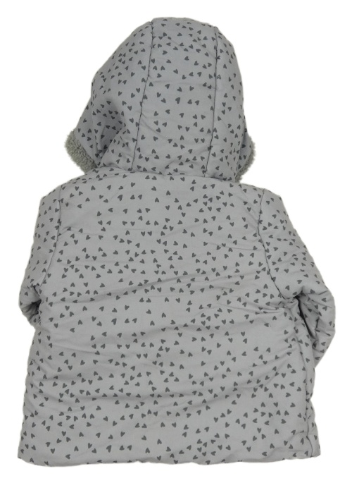 • Nové - Sivá šušťáková zimná bunda so srdiečkami a kapucňou s kožešinou