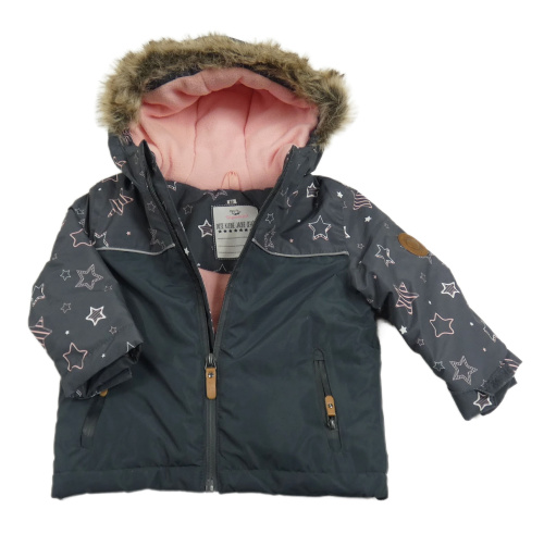 Tmavosivá šušťáková zimná bunda s hviezdičkami a kapucňou Topomini