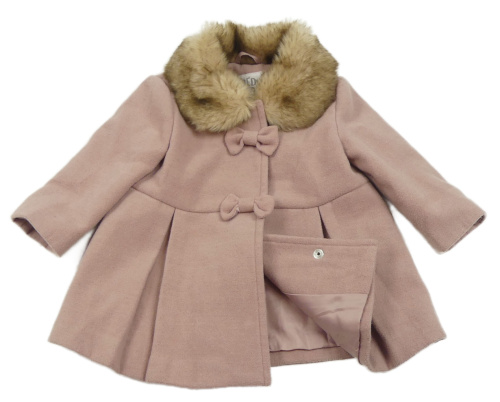 Staroružový flaušový jarný kabát s mašľami a kožušinovým golierikom F&F