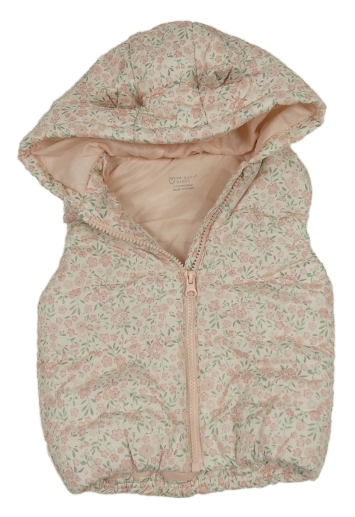 Smotanová kvetovaná šušťáková zateplená vesta s kapucňou Primark
