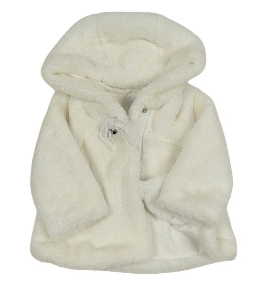 Biela kožušinová podšitá bunda s mašlou a kapucňou Mayoral