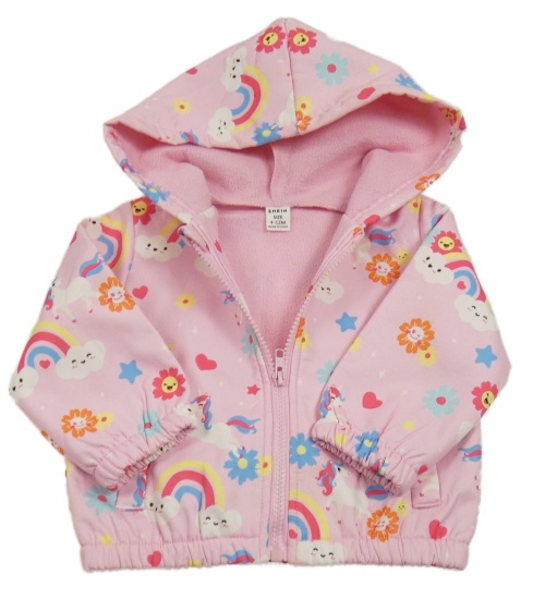 Svetloružová softshellová bunda s jednorožcami a duhami a kapucňou SHEIN