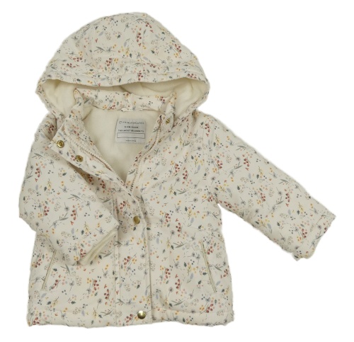 Smotanová šušťáková zimná bunda s pampeliškami a makovicemi a kapucňou PRIUMARK