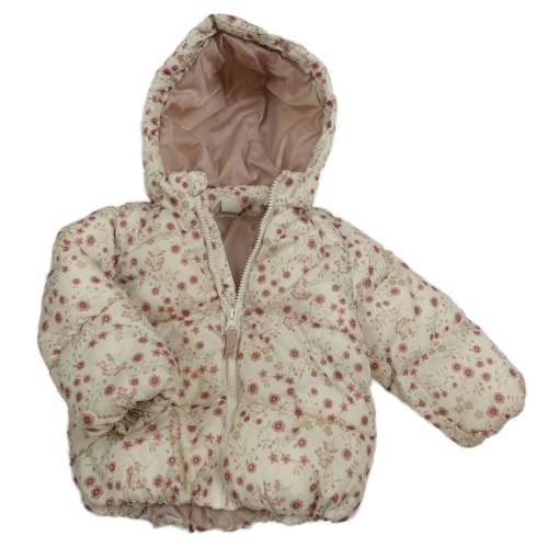 Smotanová kvetovaná šušťáková zimná bunda s odopínacíá kapucňou H&M