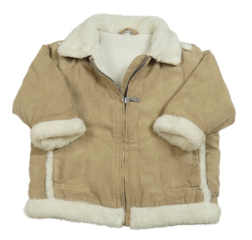 Béžovo-smotanová semišová zateplená bunda s kožúškom