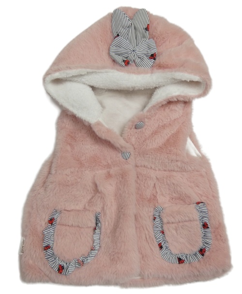 Ružová kožušinová podšitá vesta s volánikmi a kapucňou