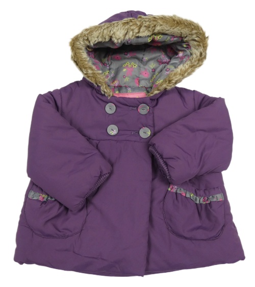 Purpurový šušťákový zimný kabát s kapucňou s kožešinou M&S