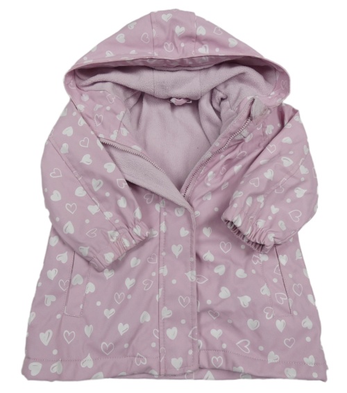 Lila bodkovaná á nepromokavá jarná bunda so srdiečkami a kapucňou Ergee