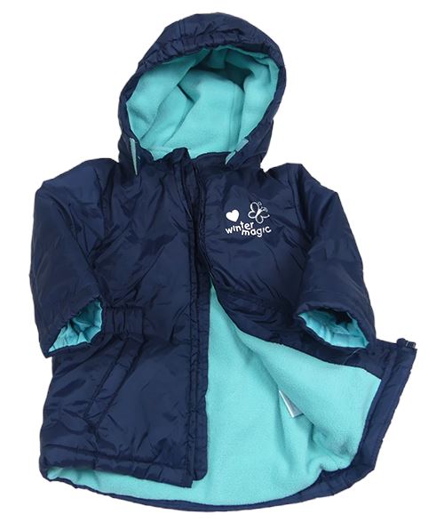 Tmavomodrá šušťáková zimná parka s nápisom a kapucňou Papagino