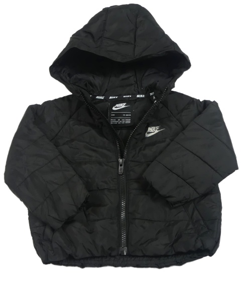• Čierna prešívaná šušťáková zateplená bunda s logom a kapucňou Nike