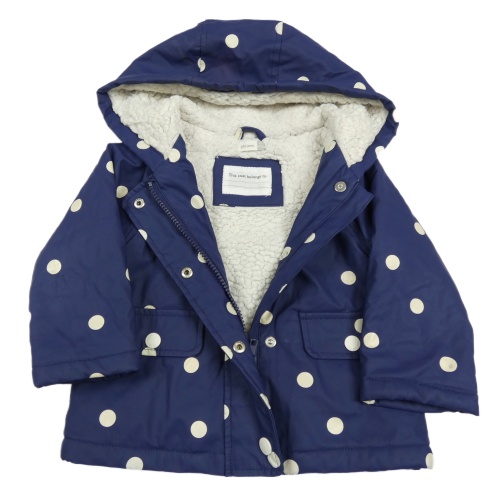 Tmavomodrá bodkovaná á vodeodolná zateplená bunda s kapucňou John Lewis