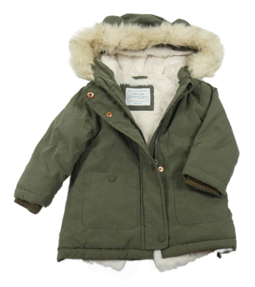 Khaki šušťáková zimná bunda s kapucňou s kožešinou Primark