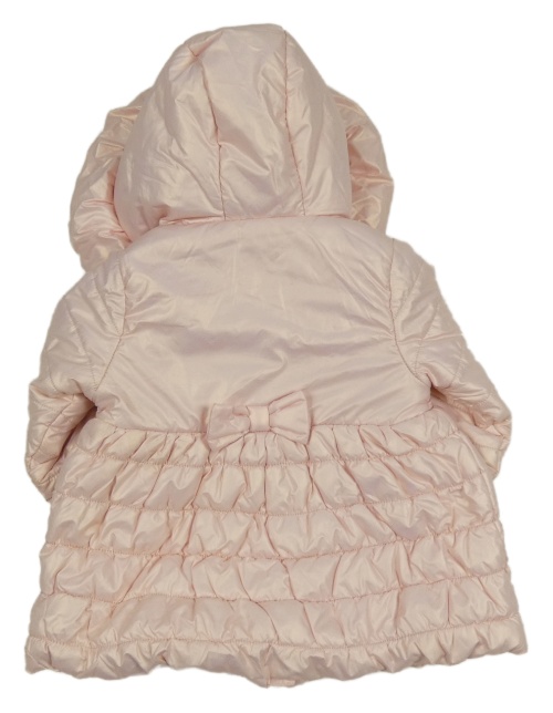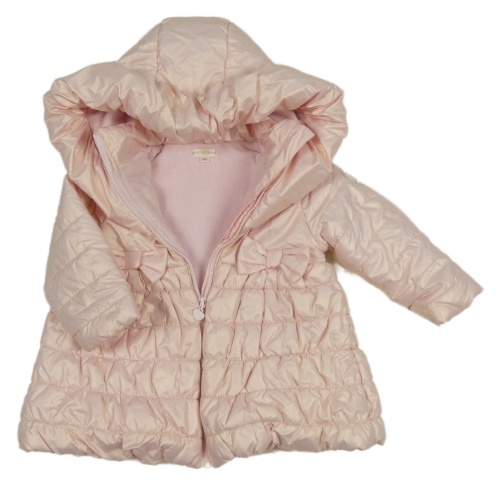 Ružový lesklý šušťákový zimný kabát s mašľami a kapucňou