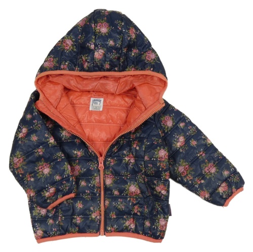 • Tmavomodrá kvetinová šušťáková prešívaná zateplená bunda s kapucňou Chicco