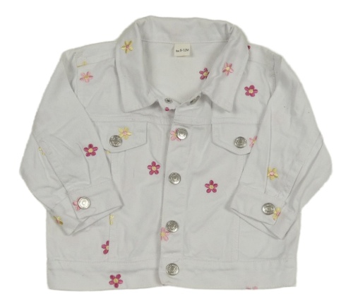 Biela rifľová bunda s kvetmi a golierikom