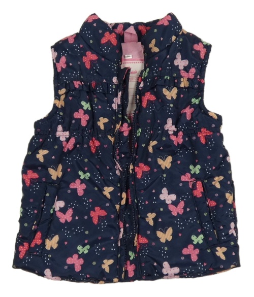 Tmavomodrá šušťáková zateplená vesta s motýly Topomini