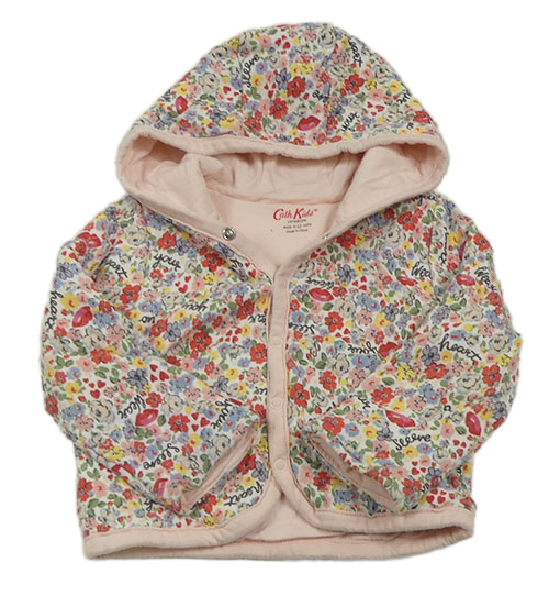 Bílo-barevný květovaný prošívaný zateplený kabátek s kapucňou