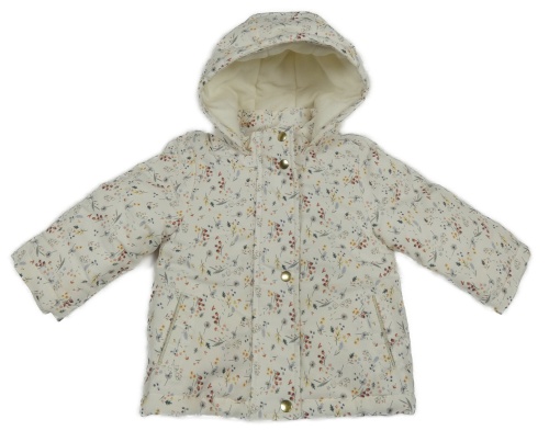 • Smotanová šušťáková zimná bunda s kvietkami a pampeliškami a kapucňou PRIMARK