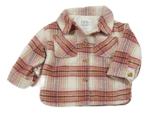Ružovo-smotanová kockovaná vlnená podšitá košeľová bunda F&F