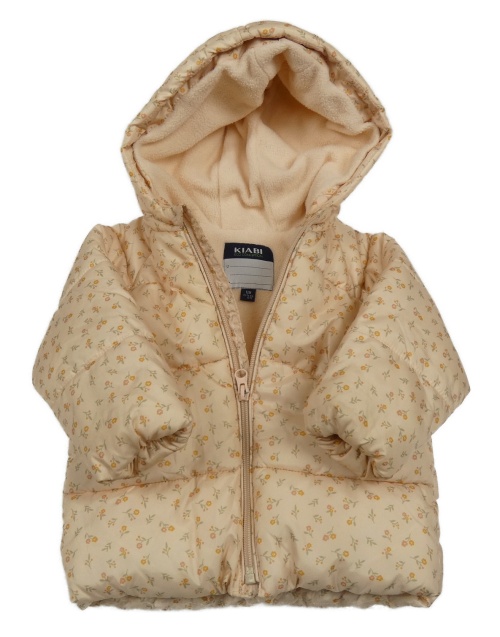 Vanilková šušťáková kvetovaná zimná bunda s kapucňou Kiabi