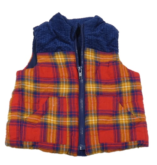 Červeno-modrá kockovaná zateplená vesta