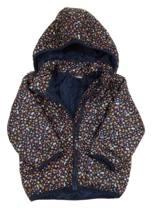 Tmavomodrá kvetinová šušťáková zateplená bunda s kapucňou H&M