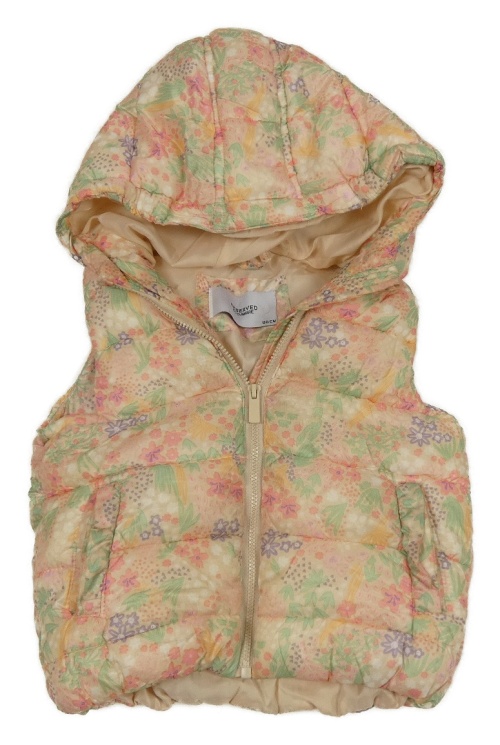 • Smetanovo-farebná kvetovaná šušťáková zateplená vesta s kapucňou Reserved