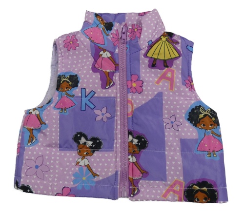 Lila-levandulová šušťáková zateplená vesta s dievčatkom a srdiečkami Shein