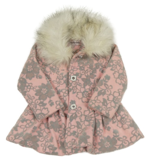Růžovo-šedé květovaný flaušový lehce zateplený kabátek s kožešinou