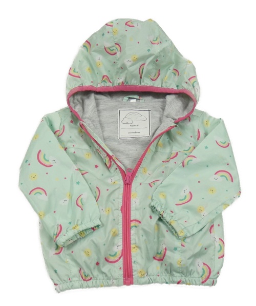 Mintová šušťáková jarná bunda s duhami a kapucňou