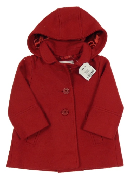 Nové - červený vlnený podšitý kabát s kapucňou Next