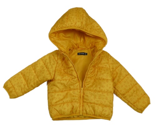 Horčicová vzorovaná šušťáková zateplená bunda s kapucňou