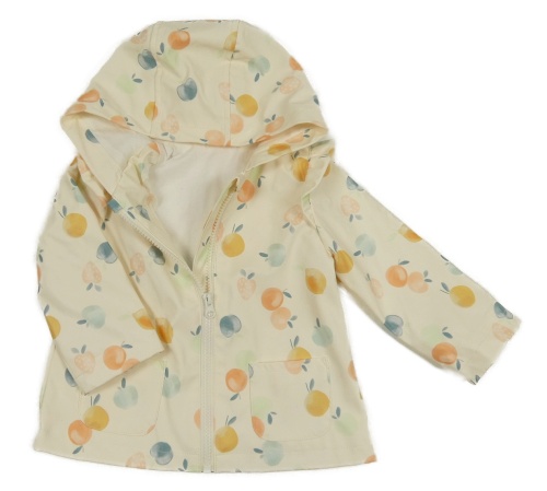 Smotanová vodeodolná jarná bunda s ovociem a kapucňou Tu