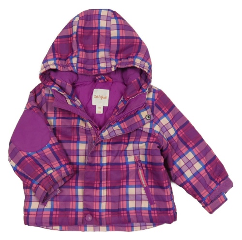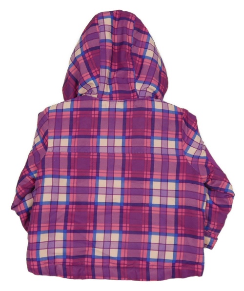 Fialovo-fuchsiová kockovaná šušťáková zateplená bunda s kapucňou