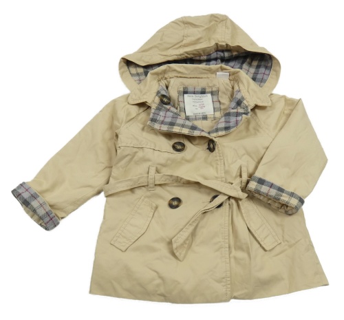 Béžový šušťákový jarný kabát s pásekm a kapucňou Zara