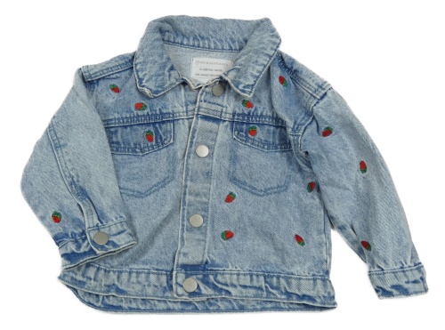 Modro-biela plesňová rifľová bunda s jahůdkami a golierikom PRIMARK
