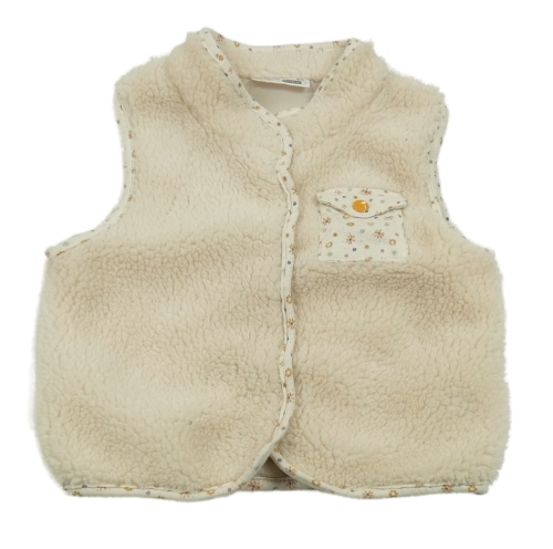 Béžová huňatá podšitá vesta s kvetovanou vreckom Ergee