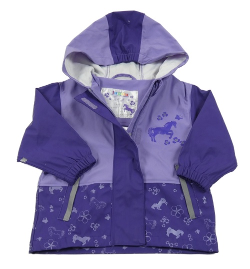 Fialovo-tmavomodrá nepromokavá bunda s koníkem a kapucňou Lupilu
